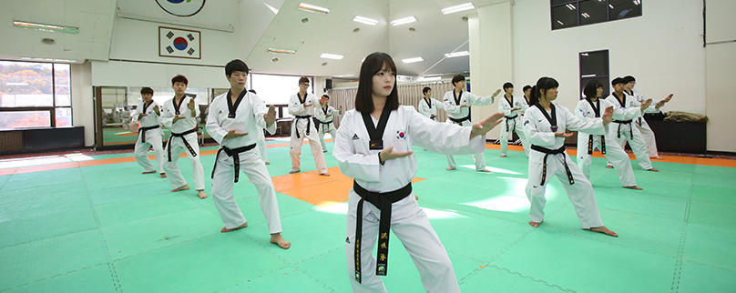 태권도학전공은 한국의 전통 무도스포츠 태권도를 전 세계에 전파하는 글로벌 태권도인으로서 품격과 교양 그리고 지도능력을 갖춘
